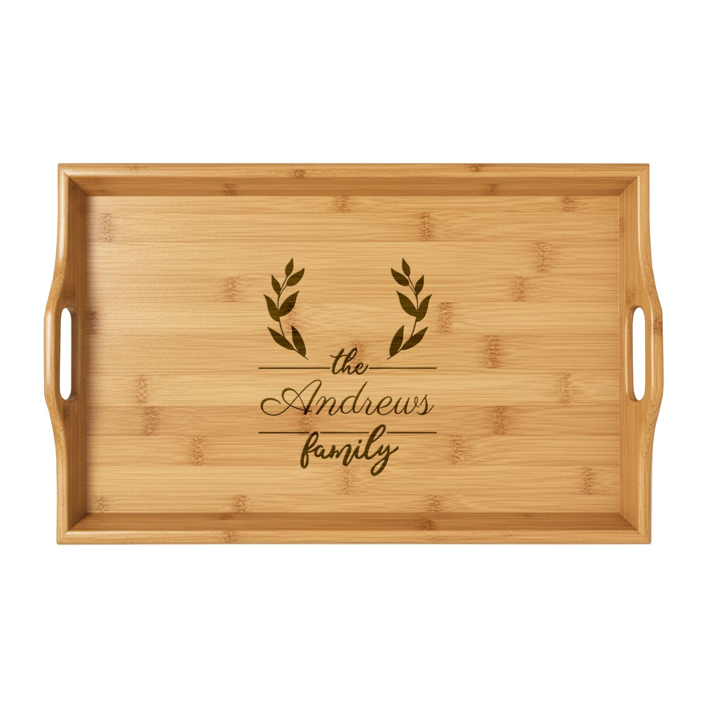 Personalized Bamboo Serving Tray - D - 16.5″ × 9.75″ × 2.5″ / Bamboo