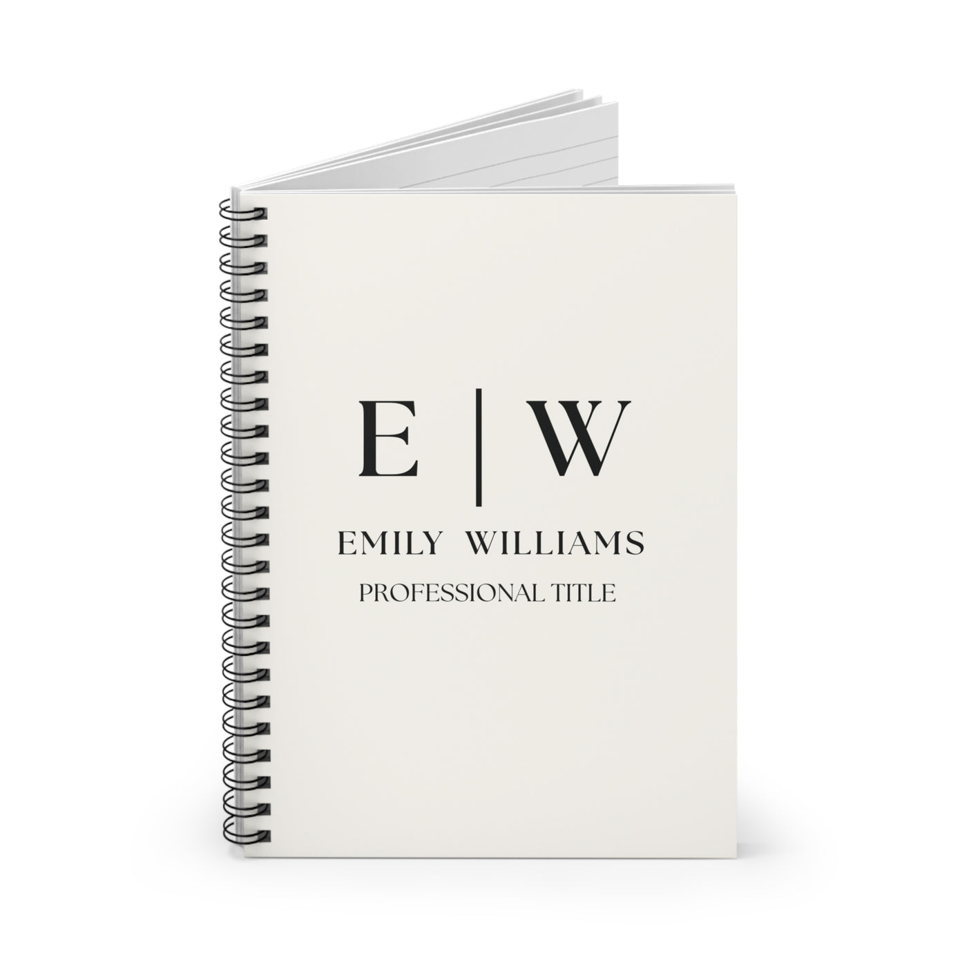 A personalized business notebook with your name and professional title, perfect for corporate gifts and product branding. The metal spiral...
